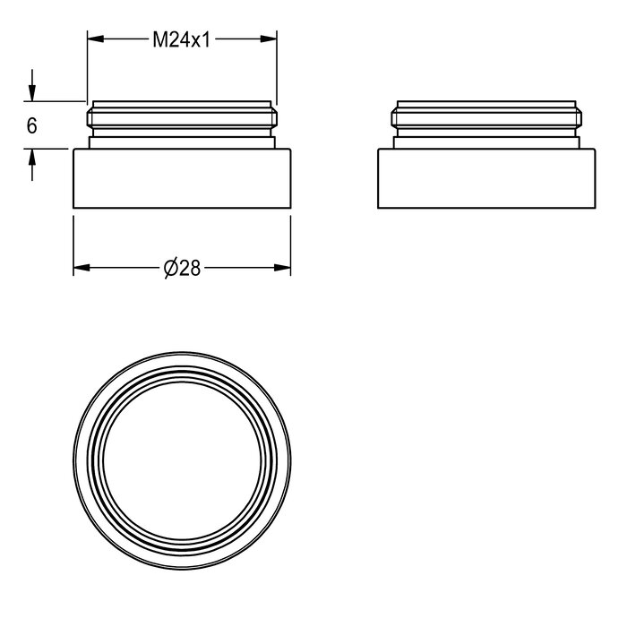 Boîtier d'aérateur antivol, pour robinetterie de lavage, M 24 x 1, en laiton chromé poli.