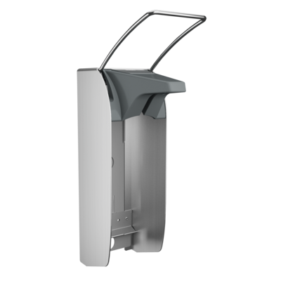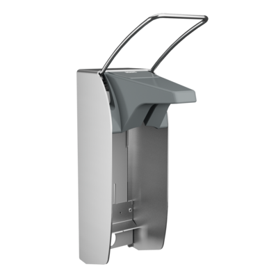 Un distributore azionabile con il gomito per l'erogazione di sapone liquido e disinfettante completa il programma di accessori MEDCARE dedicati ai posti di lavaggio nel settore sanitario.