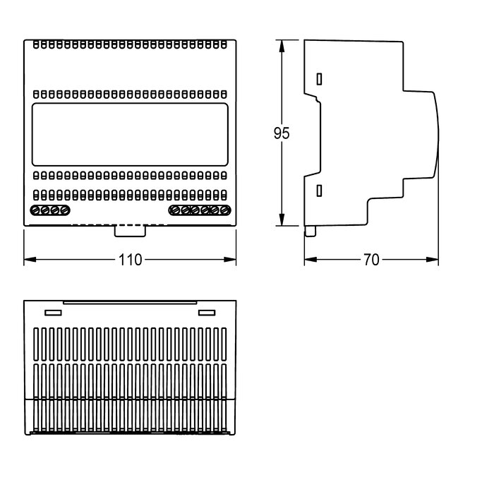 Alimentatore di rete, tensione di esercizio 100-240 V AC, tensione di uscita commutabile tra 7 V DC (31,5 W) o 12V DC (50 W). Per l'alimentazione di max 16 utenze a seconda della lunghezza e dello spessore del cavo utilizzato.