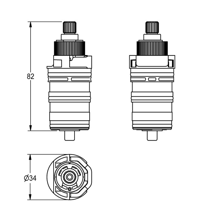 Parte funzionale termostatica per miscelatore termostatico con selettore temperatura. Per rubinetteria e pannelli doccia Smartwave.