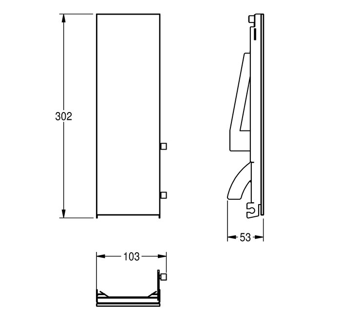 Pannello frontale, acciaio al cromo-nichel, con vetro di sicurezza temprato nero, per tutti i distributori di sapone EXOS per installazione a incasso, incluso materiale di fissaggio.