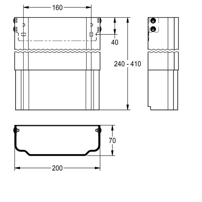 Afmetingen behuizing ca. 200 x 240 tot 410 mm (B x H)