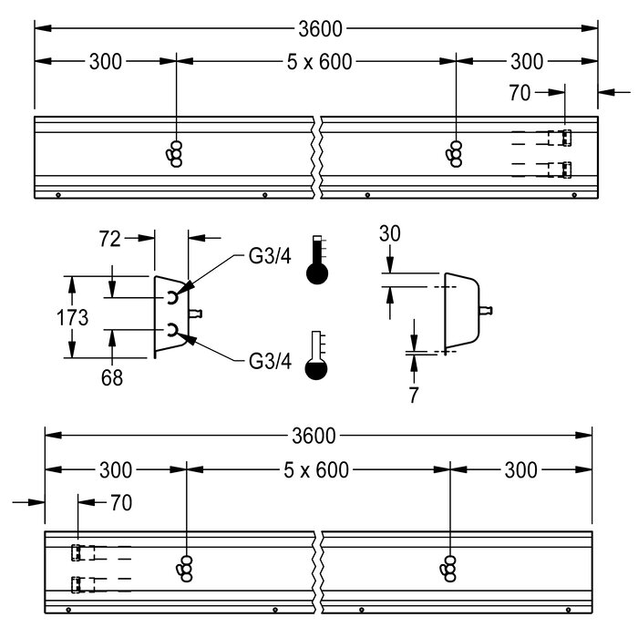 Afmetingen behuizing 3600 x 173 x 72 mm (B x H x D)