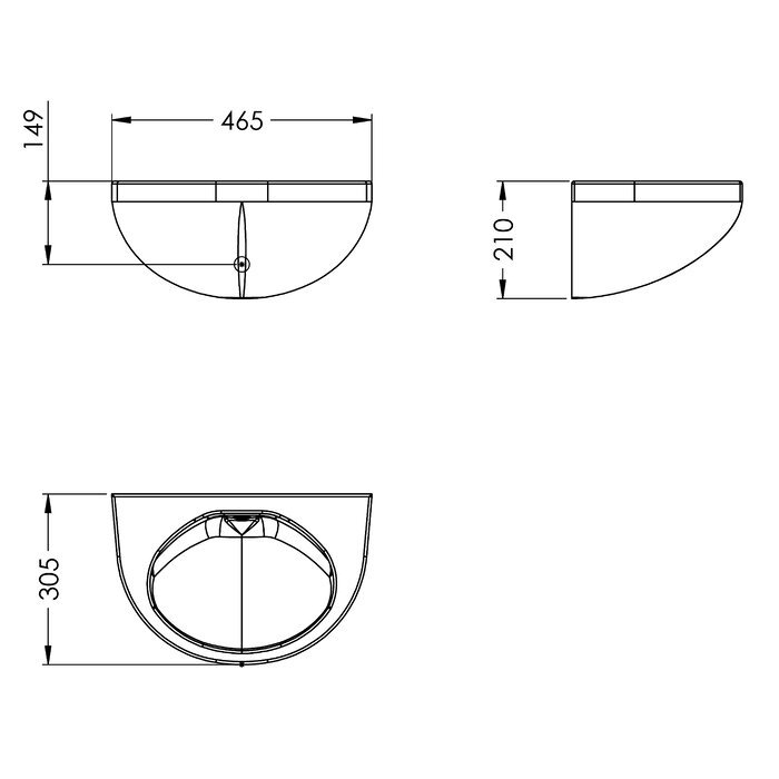 Wastafel voor wandmontage, van glasvezelversterkte, slagvaste kunststof, met onderhoudsvriendelijk gelcoatoppervlak, materiaaldikte 8 mm, kleurtoon wit (RAL 9016), naadloos, ovale kom zonder overloop en zonder kraangat, met draadstangen M12x300 mm voor vandaalbestendige montage via technische ruimte, afvoer DN32, montage van sifon (niet meegeleverd) via technische ruimte.