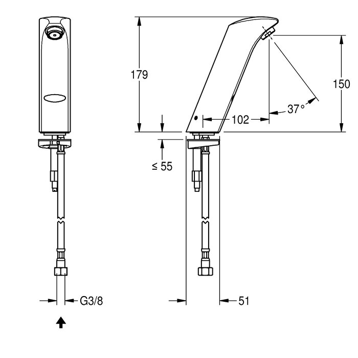PROTRONIC-S elektronische wastafelkraan DN 15, opto-elektronisch gestuurd, onafhankelijk van elektriciteitsnet, geluidsklasse 1, met perlator en geïntegreerde debietregelaar, voor aansluiting op voorgemengd warm of koud water, messing gepolijst verchroomd , 6V batterij.