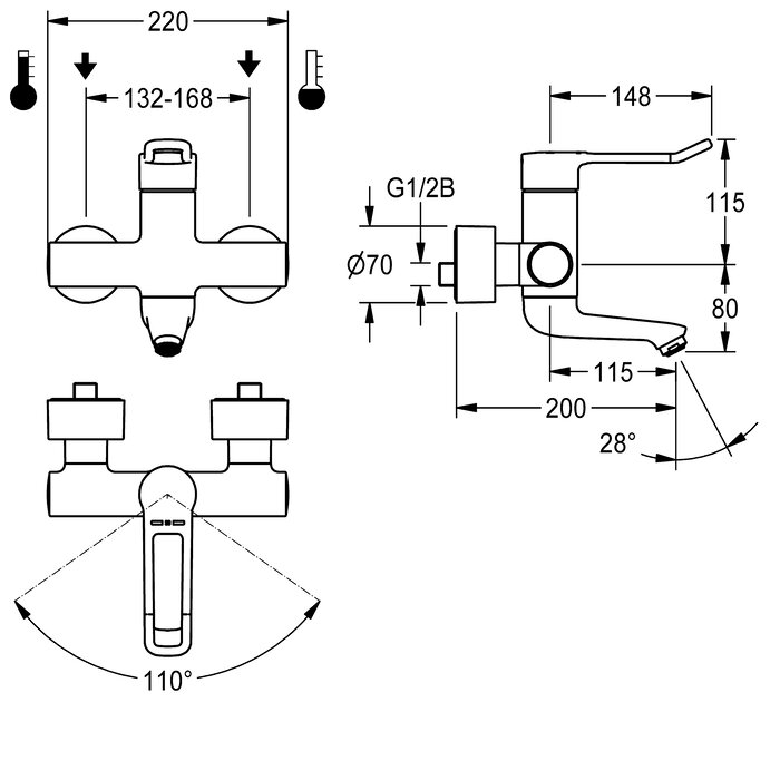 F4LT-Med väggmonterad termostatenhet med engreppsblandare DN 15 för utanpåliggande montering, med låsbart och svängbart utlopp, för tvättanläggningar inom hälso- och sjukvård, spaklängd 148 mm. Termost atstyrd blandarpatron med expansionselement, egensäker mot återflöde, säkerhetsavstängning vid kallvattenbortfall, reglerbart och vridsäkert temperaturanslag och keramiska skivor. Utan backventil för optimerad dricksvattenhygien. Ergonomiskt utformad spak i bygelform, lätt rundad framtill och med basaltgrå beläggning – skön att hålla i och vacker att se på. För anslutning till varm- och kallvatten. Rengöringsoptimerad ventilform, skållningsskyddat Safe-Touch-hus, utförande helt i metall, högblank förkromad mässing. Volymreducerade vattenledningar med slät yta av mässing med låg blyhalt (≤ 0,2 %) och utan nickelbeläggning, fristående från ventilhuset. Med termiska isoleringskomponenter för minskad värmeöverföring från ventilhuset till kallvattenledningen. Självtömmande utlopp med flödesregulator 9,0 l/min och laminärflödesregulator. Med justerbara och låsbara anslutningar med silar, helt täckta med rosetter med inställbart djup. Öppning 200 mm.