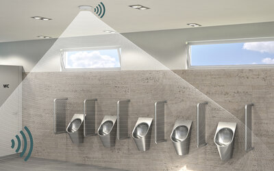 A partire dal 2025, il nuovo modulo di connettività (modulo C) di KWC Professional sarà disponibile anche per i misc elatori a parete elettronici F5. Con l'app KWC Smart Connect, è possibile gestire facilmente i rubinetti elettronici a bordo lavabo F7 e i miscelatori a parete F5.