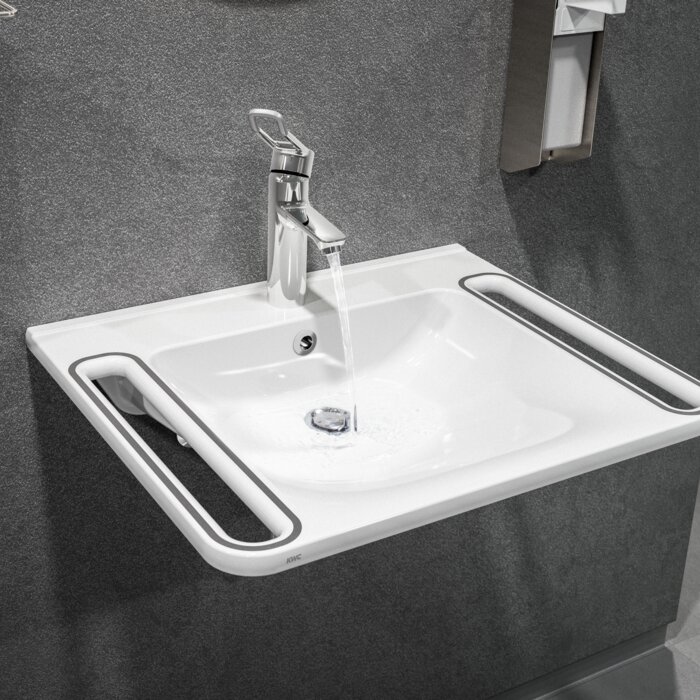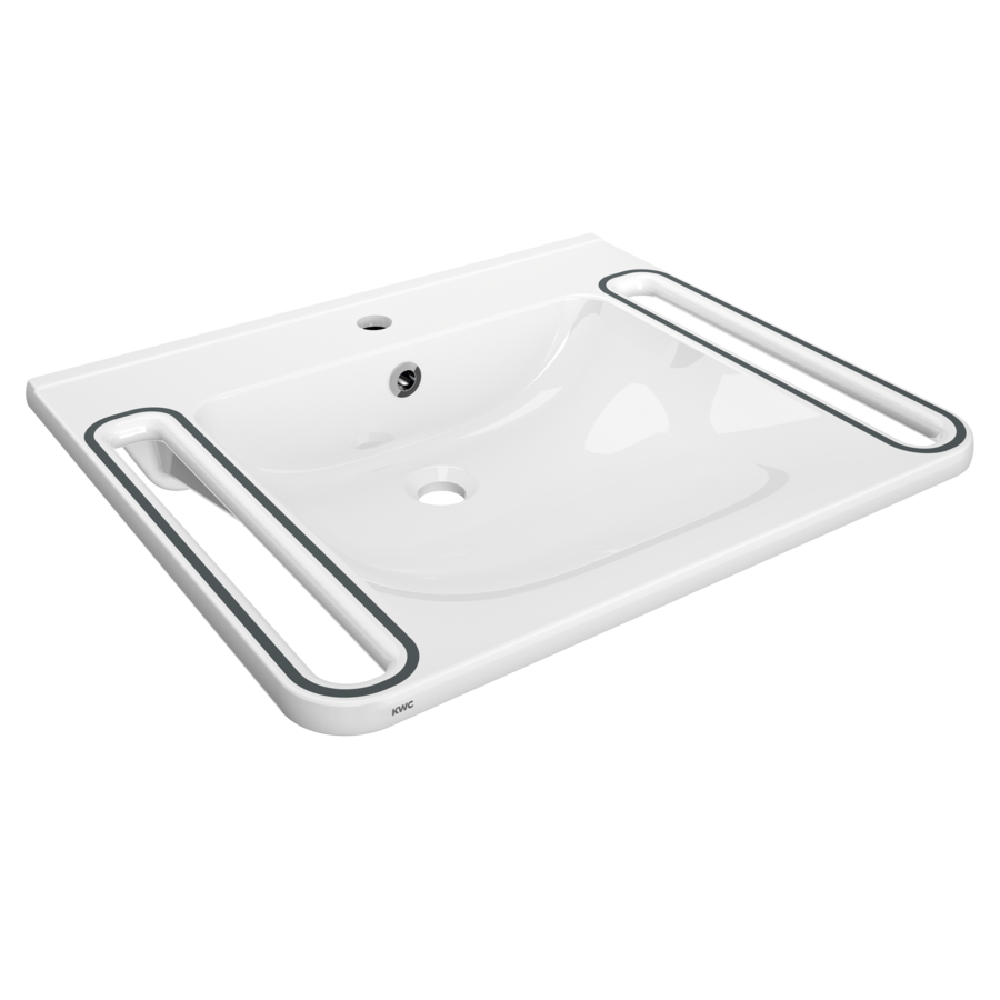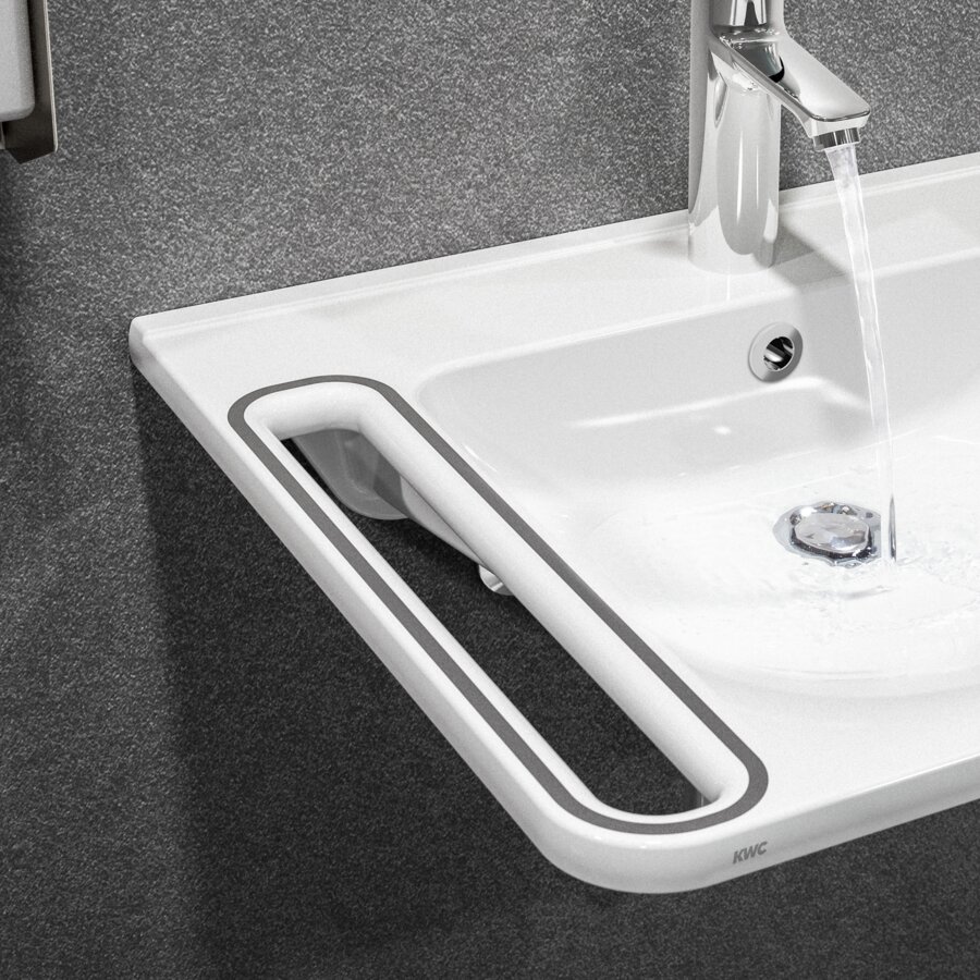Wpuszczone uchwyty znajdujące się po bokach lub z przodu umywalek wykonane są z przyjemnego i ciepłego w dotyku materiału. Zapewniają one użytkownikom optymalne wsparcie przy podciąganiu i podpieraniu się.