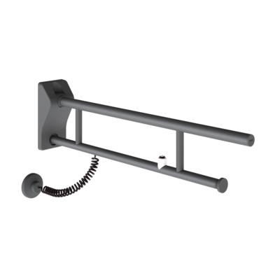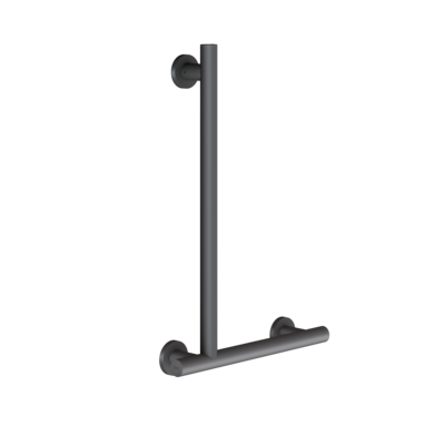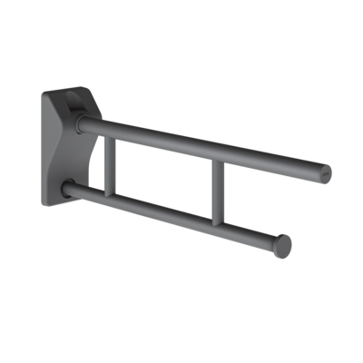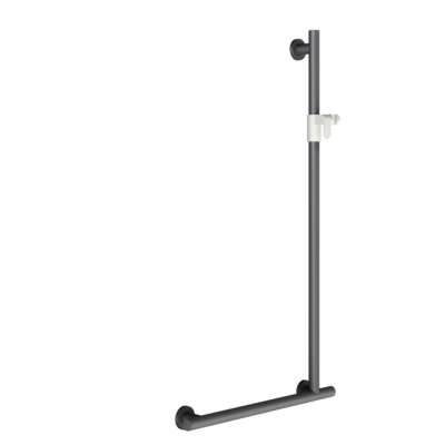 Podpory i poręcze w odcieniu bazaltowej szarości są przyjemne w dotyku i przekonują łatwą do chwycenia, ergonomiczną średnicą 32 mm. Oprócz poręczy o różnych długościach, oferta obejmuje również poręcz kątową 90° i składane poręcze do WC. W przypadku poręczy kątowej z uchwytem słuchawki prysznicowej oraz uchylnej poręczy do WC z przyciskiem do spłukiwania funkcjonalne elementy w kolorze białym umożliwiają użytkownikom wizualną orientację zgodnie ze sprawdzoną zasadą 2 zmysłów.
