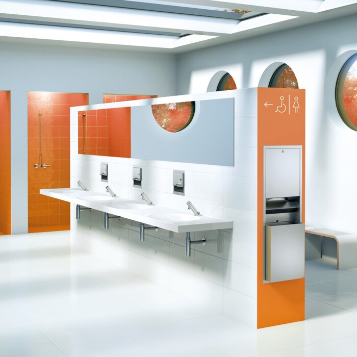 Sanitetsanläggningar i skolor och idrottshallar används intensivt. Det kräver praktiska, hållbara och ekonomiska produkter. Vi förlitar oss på den senaste armaturtekniken, rostfritt stål och mineralgranit.