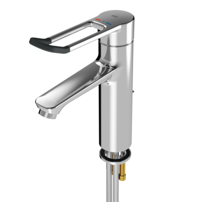Den första keramiska termostatpatronen för engrepps blandare i F4LT-Med serien säkerställer bekvämlighet och säkerhet vid tvätt och ger aktivt skållningsskydd. Den termostatiska styrfunktionen säkerställer att den valda temperaturen förblir konstant över hela inställningsområdet. Med ergonomisk armspak för enkel aktivering med armbågen istället för handen.
