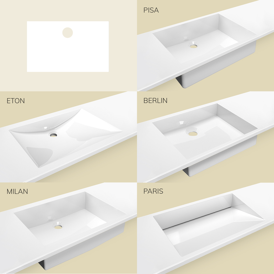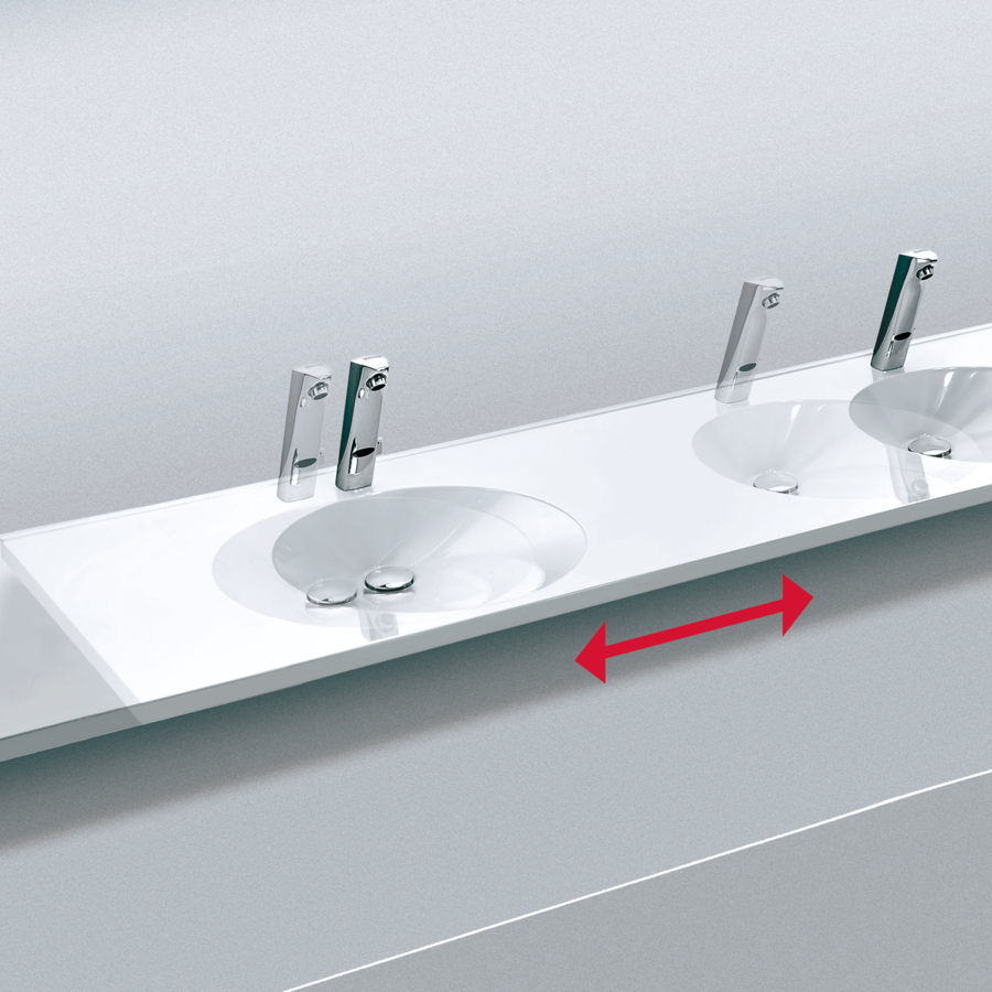 Olika designade tvättställsformer (VARIUSsign) kan sömlöst integreras i den filigrana tvättställsskivan. Dessutom erbjuder många alternativ nästan obegränsat utrymme för design.