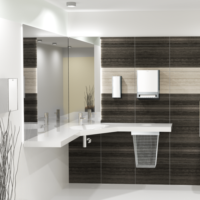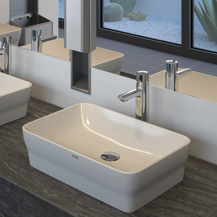 Eleganta enstaka tvättställ, radtvättställ och bänkskivor, även anpassade eller i barriärfria versioner, barntvättställ och dricksfontäner av MIRANIT ger flexibilitet och variation till moderna sanitära anläggningar.