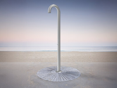 Efter ett dopp i havet, i poolen eller efter bastun njuter många spa-entusiaster av bekvämligheten att kunna duscha direkt utan att behöva gå till omklädningsrummen. Den nya vertikala duschen från KWC Professional är tillverkad i kromnickelstål och är perfekt för både inomhus- och utomhusbruk.